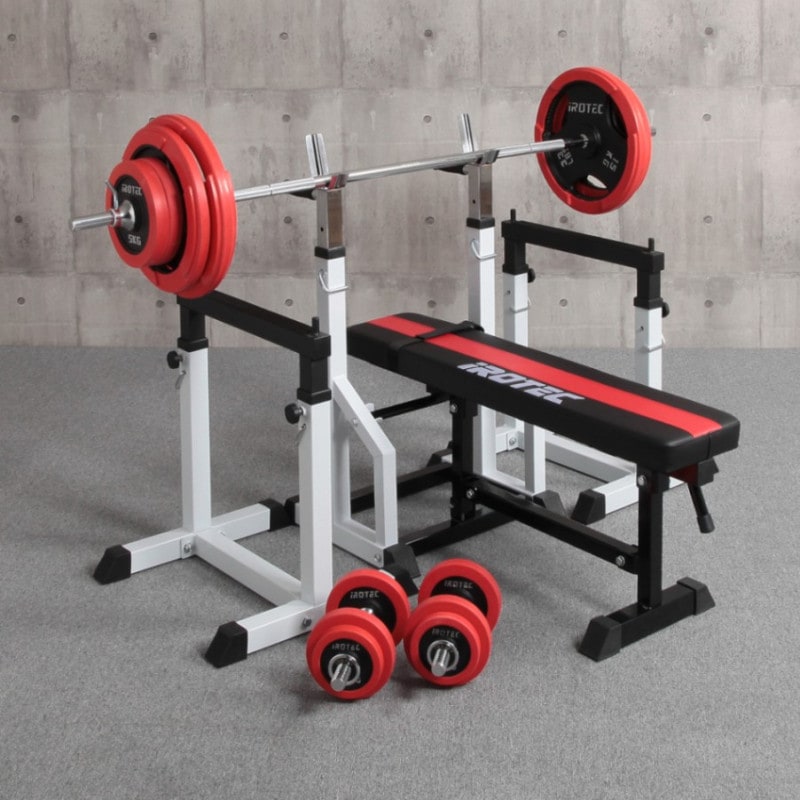 ストレングスセットR100K[プレスベンチ+ラバーバーベルダンベル100KGセット] / IROTEC(アイロテック)